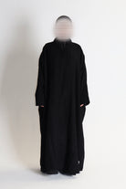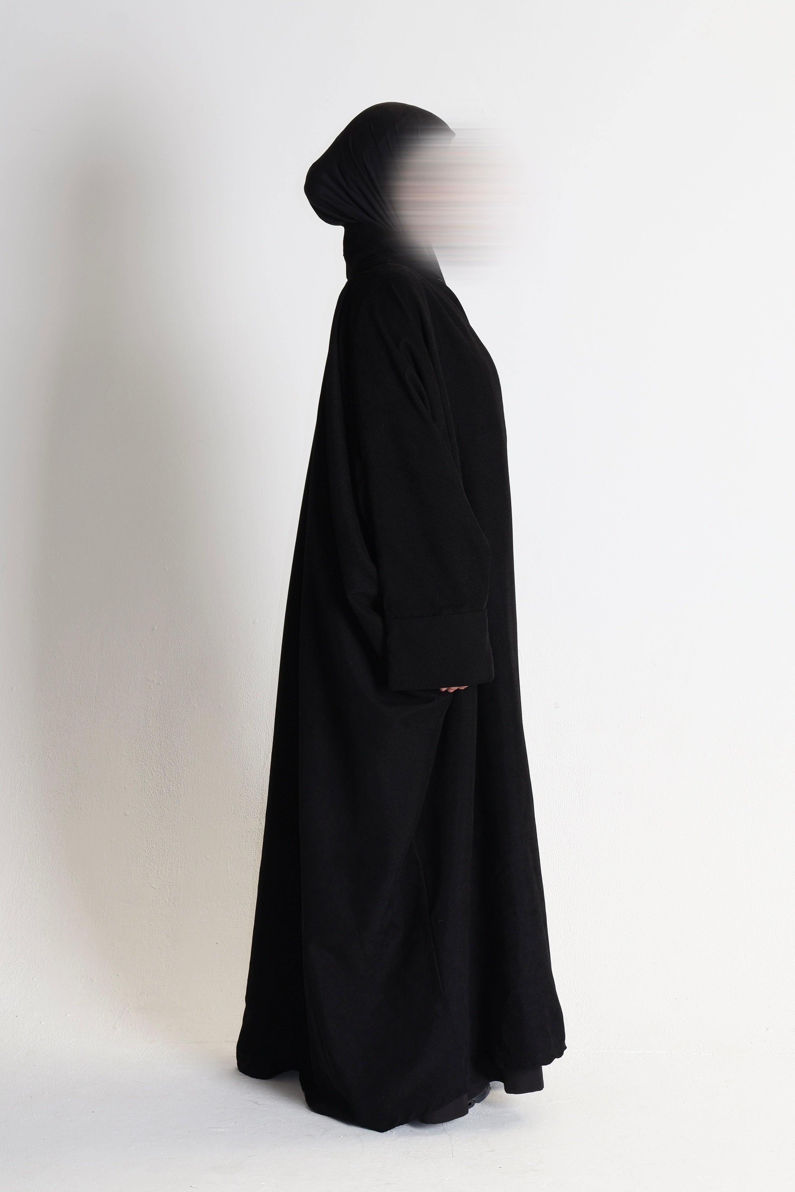 Please note: Model on the right is wearing our grey corduroy coat, which can be purchased separately. We advise to size down from your regular abaya size by at least ONE size, as we have designed this coat with an oversized fit.