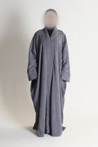 Please note: Model on the left is wearing our black corduroy coat, which can be purchased separately. We advise to size down from your regular abaya size by at least ONE size, as we have designed this coat with an oversized fit.