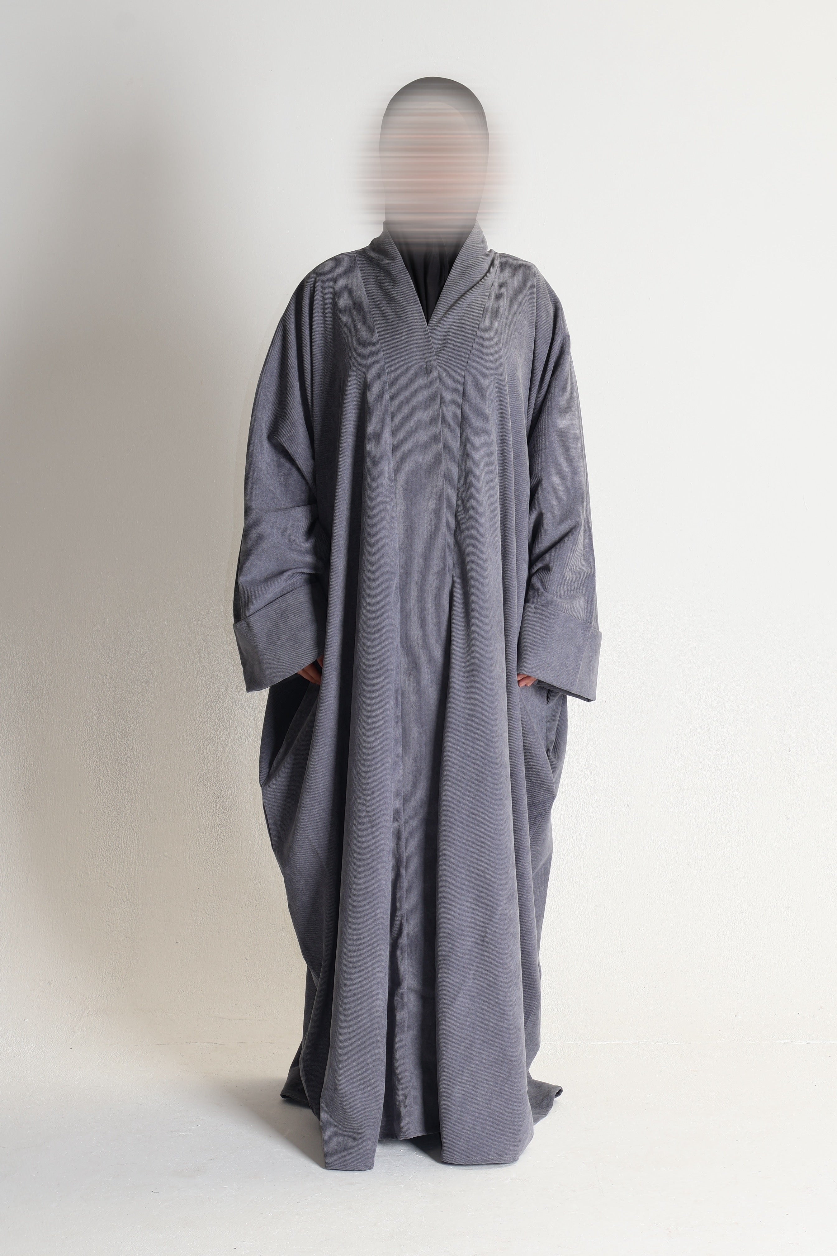 A thicker, winter abaya designed to keep you looking effortlessly modest and elegant yet warm at the same time. Comes with two deep pockets on both sides and a large popper button perfectly placed to give you the option of wearing the coat open or closed.