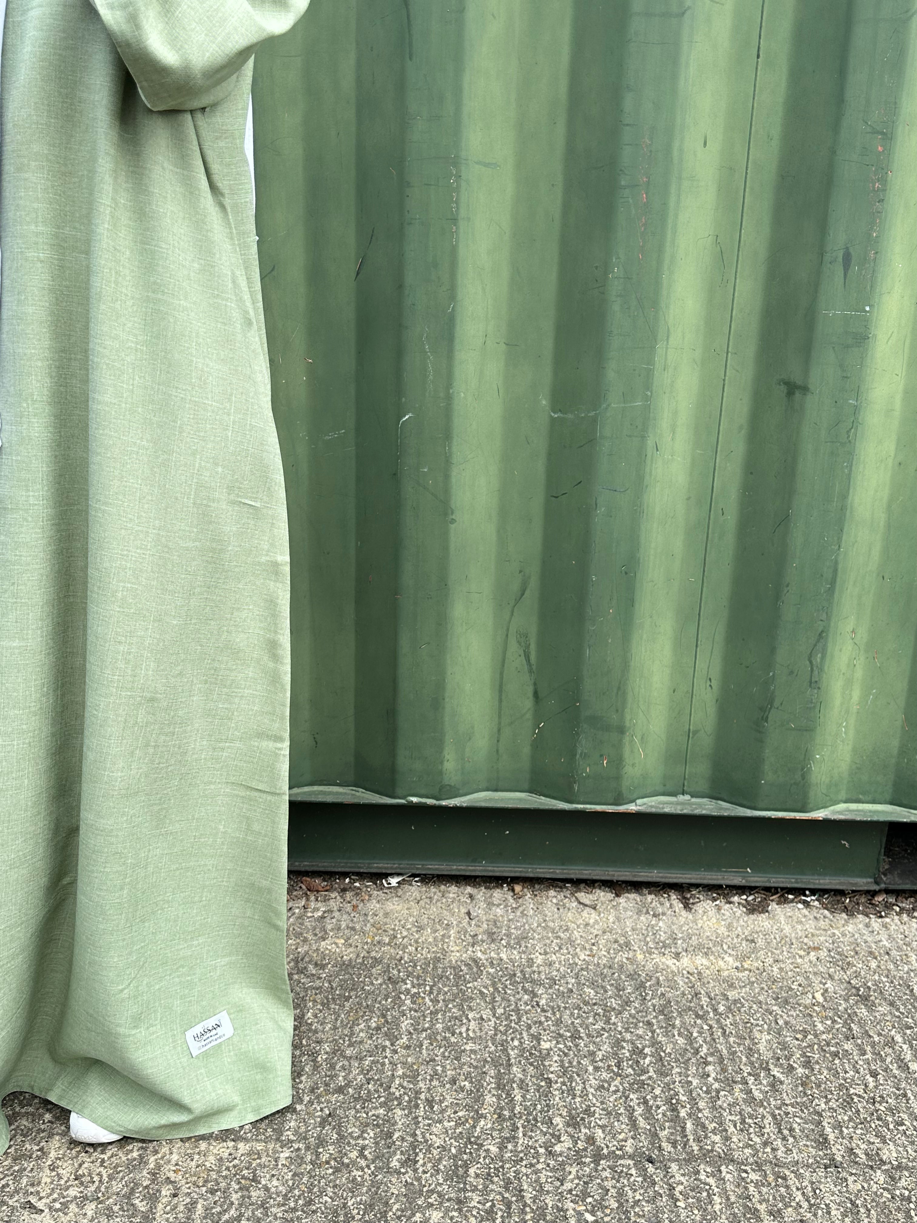 Cut from a stunning, thicker linen fabric for extra warmth and full coverage at the same time. A staple for your modest collection!