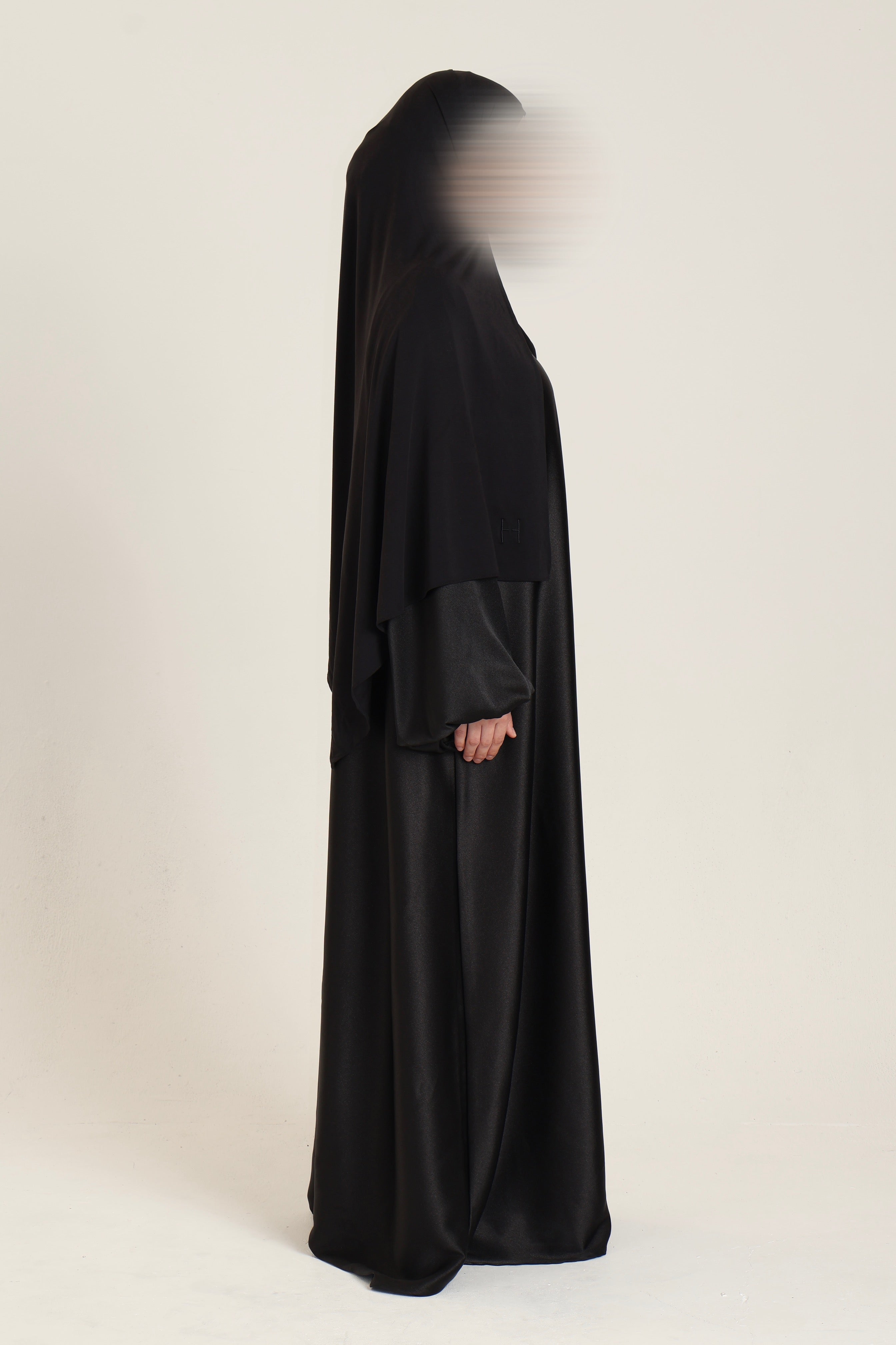 A refined straight-cut abaya designed for elevated occasions. Featuring softly structured balloon sleeves with cuff detailing and a fluid, elegant drape. Finished with the signature Hassani tag.