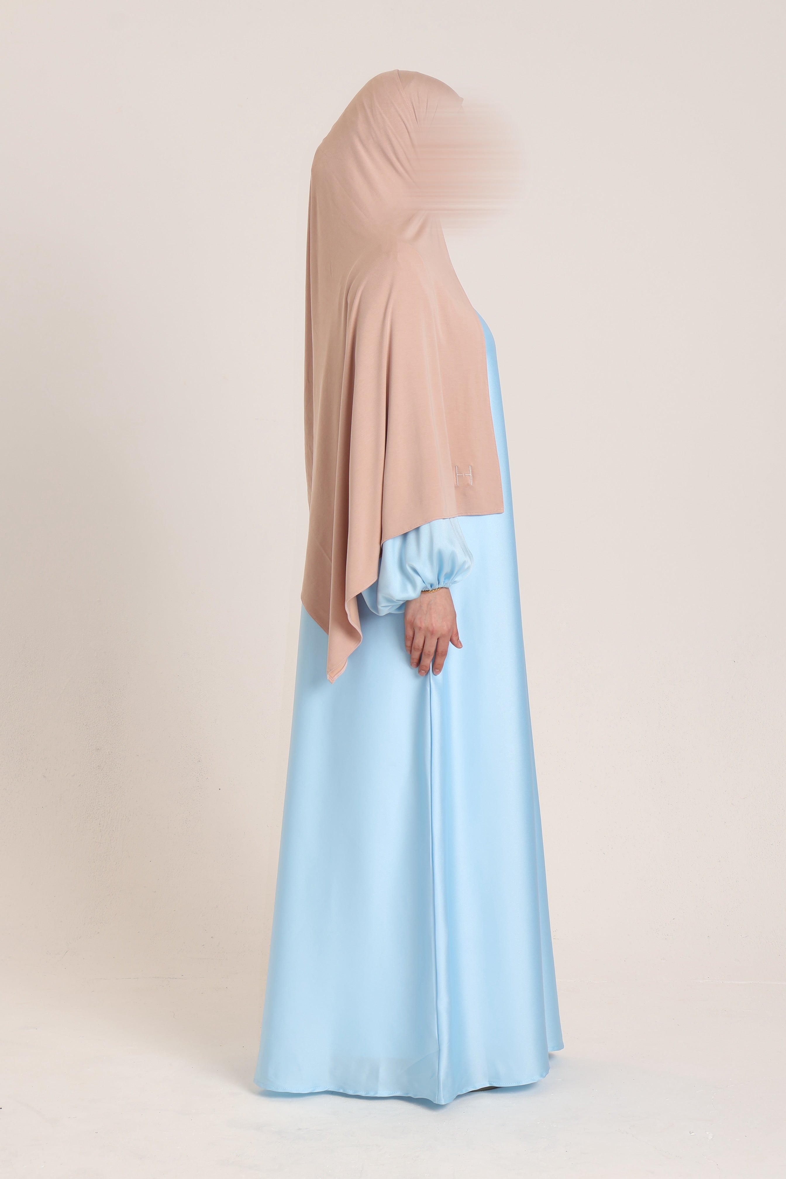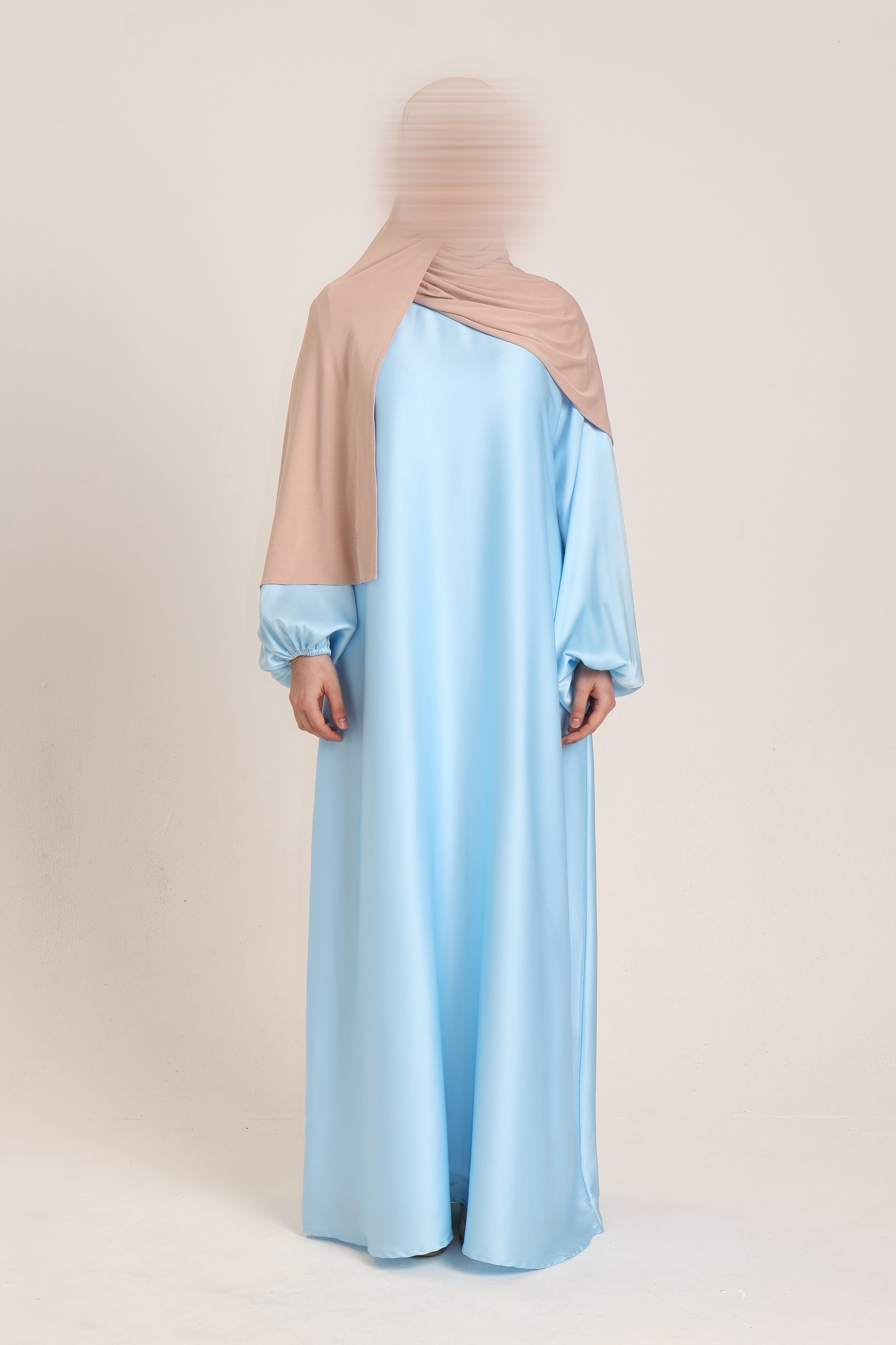 A refined straight-cut abaya designed for elevated occasions. Featuring softly structured balloon sleeves with cuff detailing and a fluid, elegant drape. Finished with the signature Hassani tag.