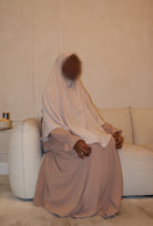 Essential diamond cut style khimar in CREAM. Stitched with a doubled up head tie band for durability and security when tied, as opposed to a standard khimar which has only one layer of fabric on the head tie region.