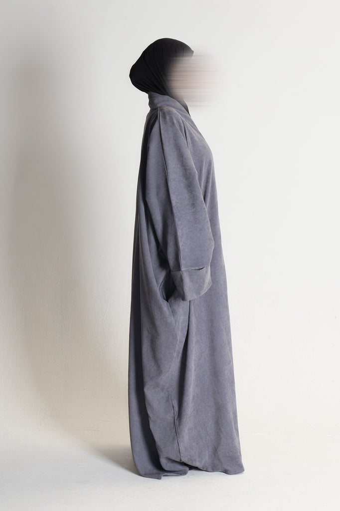 A thicker, winter abaya designed to keep you looking effortlessly modest and elegant yet warm at the same time. Comes with two deep pockets on both sides and a large popper button perfectly placed to give you the option of wearing the coat open or closed.