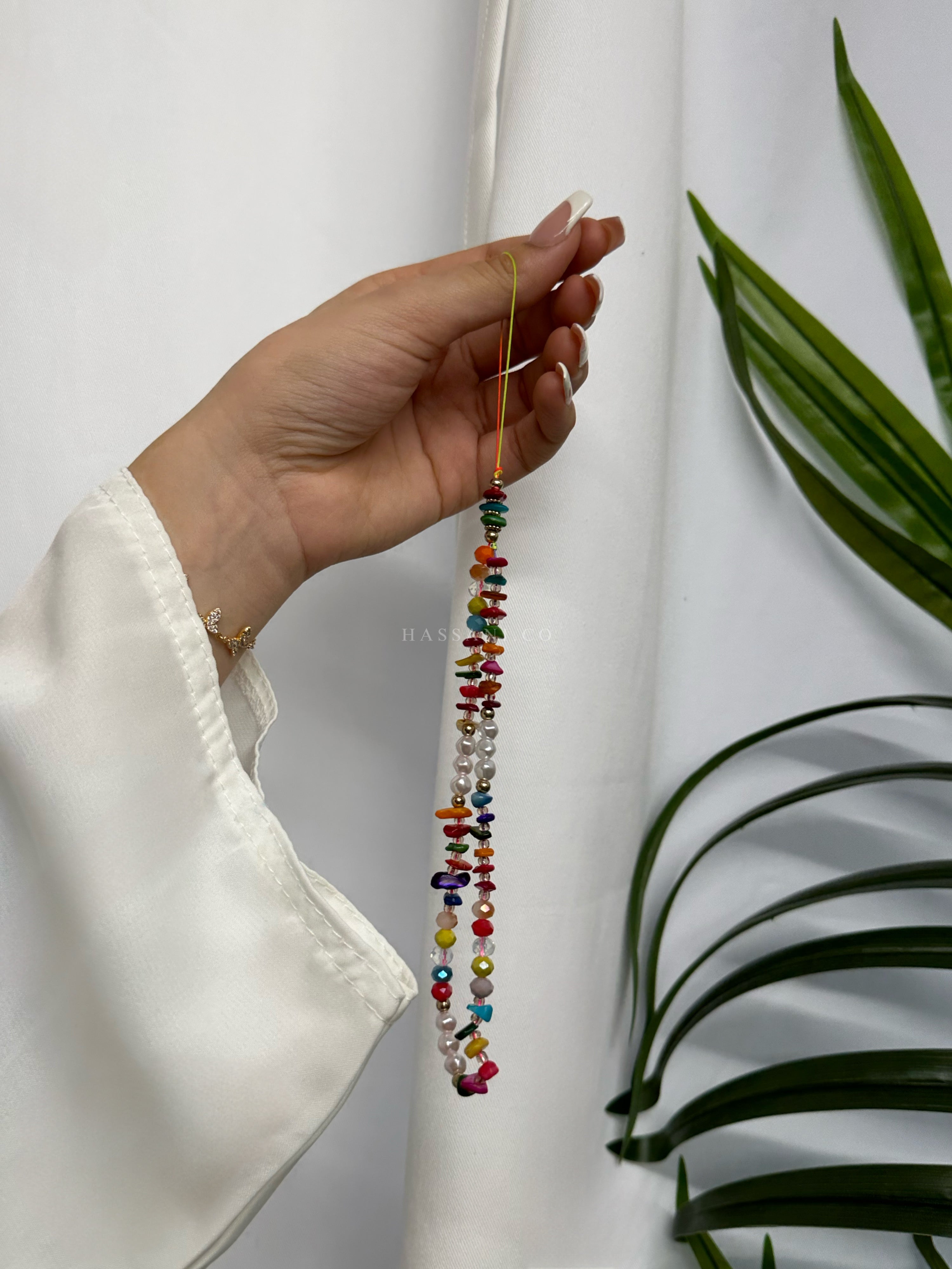 Upgrade your style with our cute, beaded phone charms Made from a mix of beads and synthetic stones, held together with string which can be attached to your phone case.