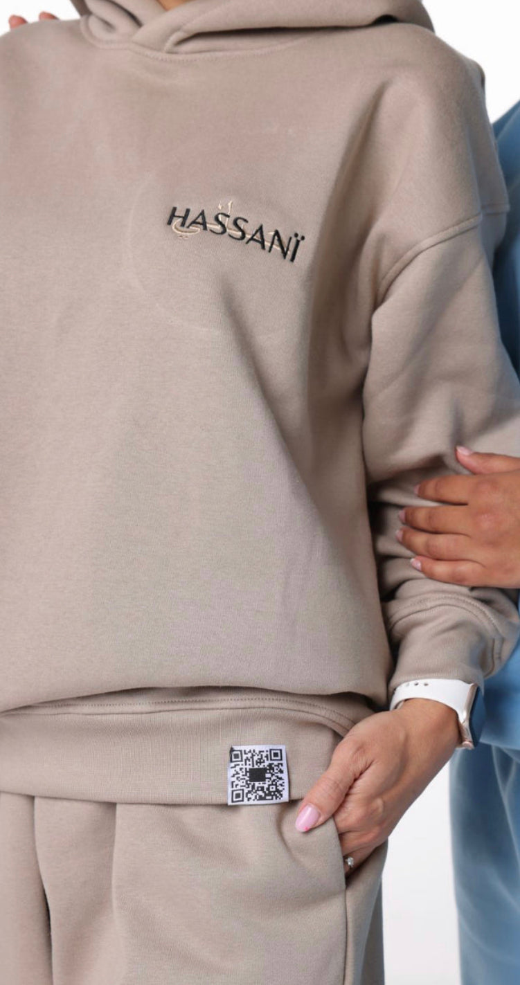 Our beige tracksuit hoodie in a size L