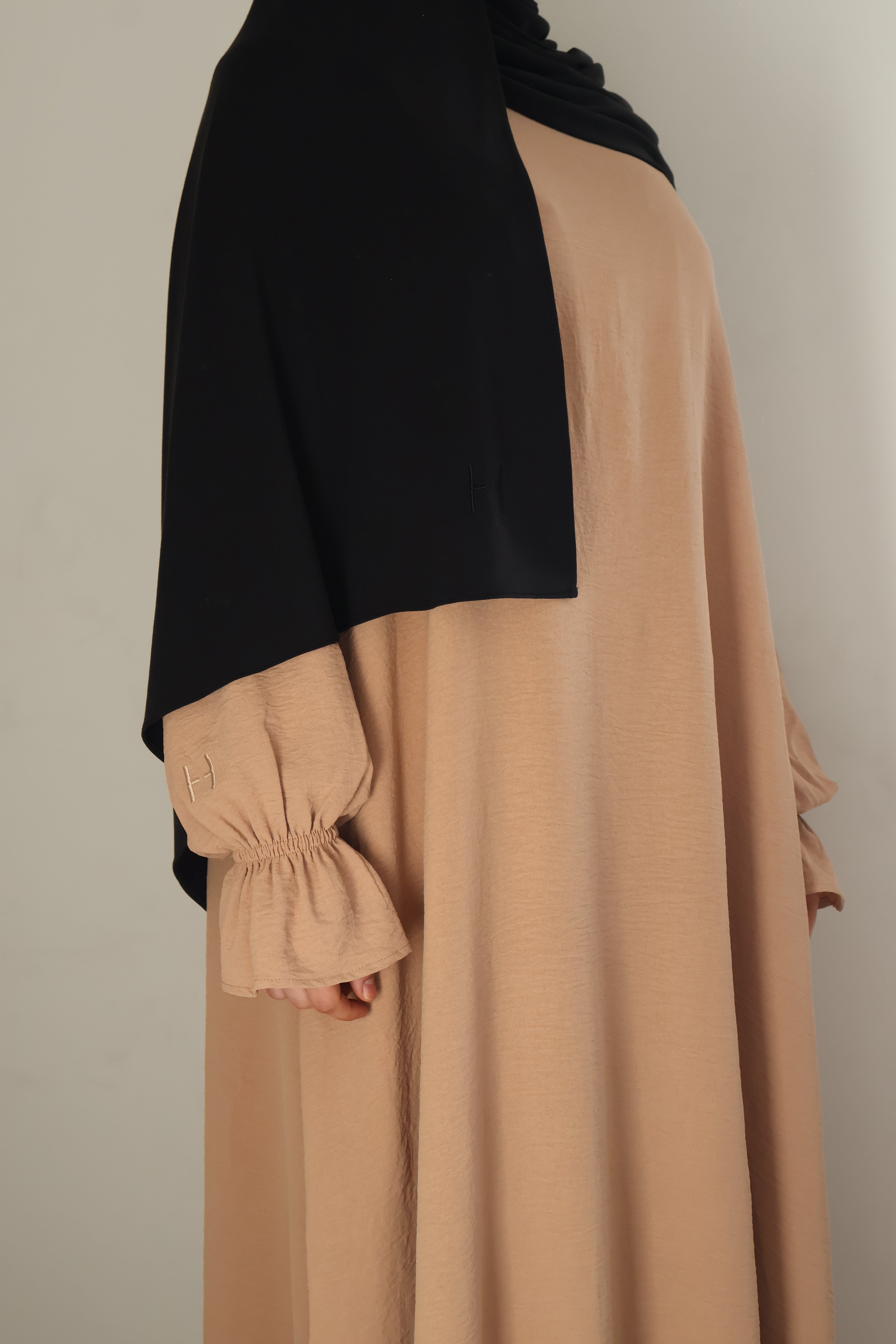 Our breathable jersey scarves are made with a carefully seamed edge for a clean look, as well as having 2 clear sides; the outer side is the one shown when worn and the inside is slightly matted. Each scarf is complete with our signature H embroidery in one corner.