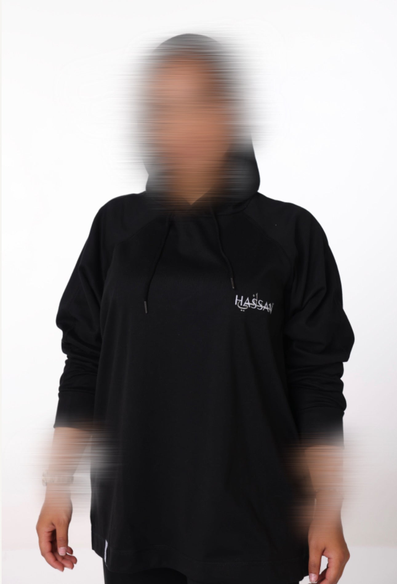 Our black women’s Hassanï hoodie. The perfect, stylish cut for working out, or even to wear as lounge wear! A super comfortable fit, made in multiple sizes for all women