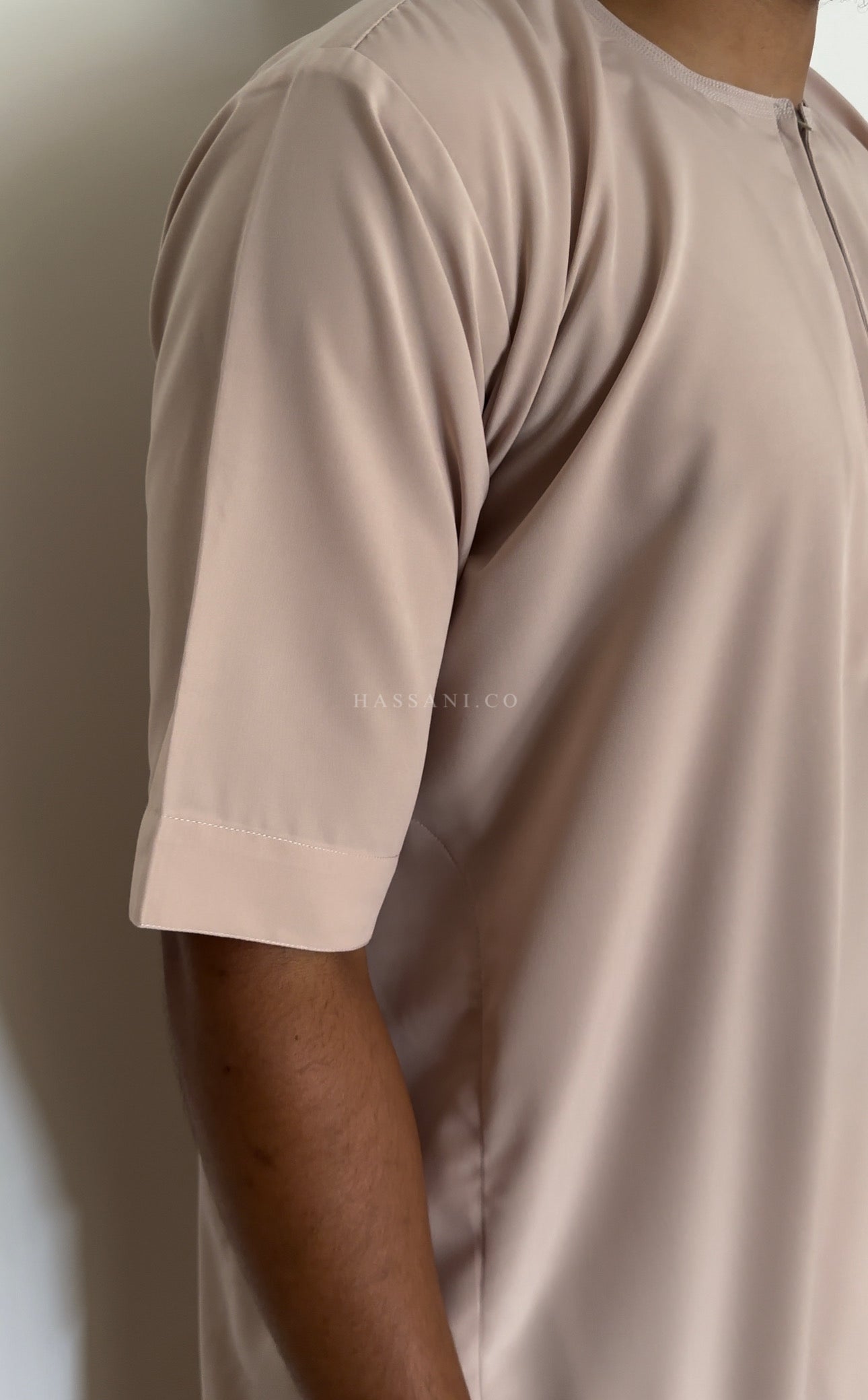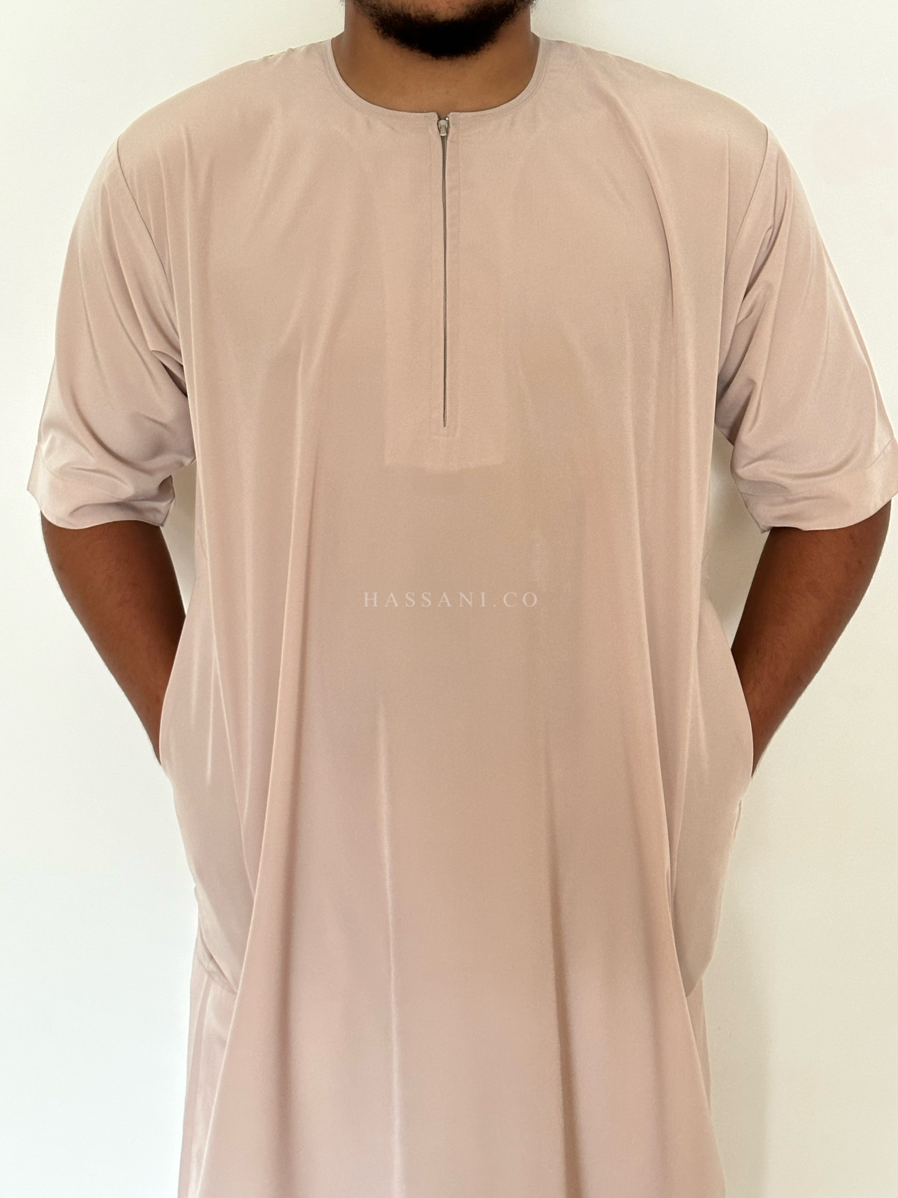 Made with two side slit pockets and a zip which reaches half way down the chest. This is the perfect thobe for everyday wear which can also be dressed up for a special occasion!