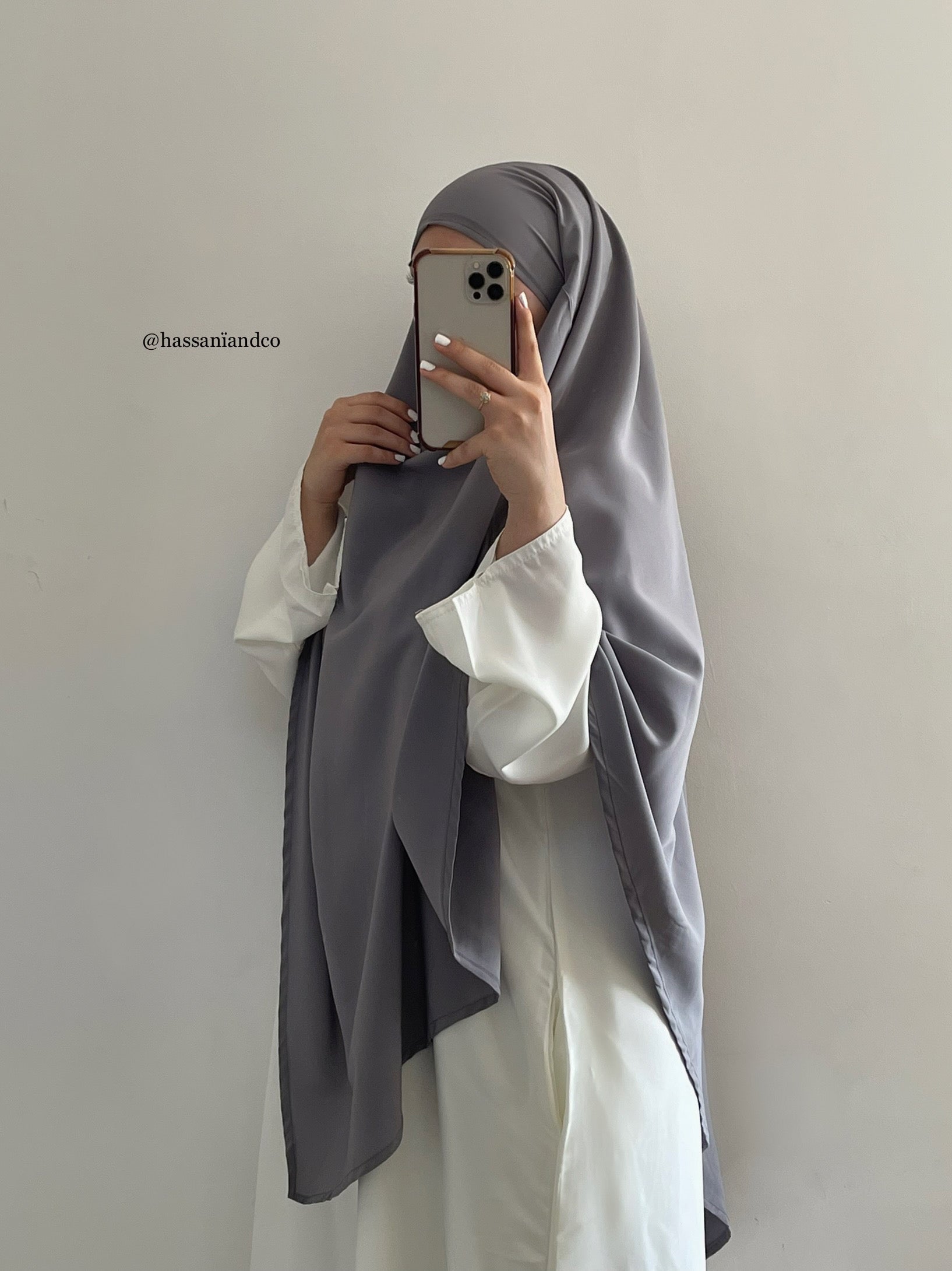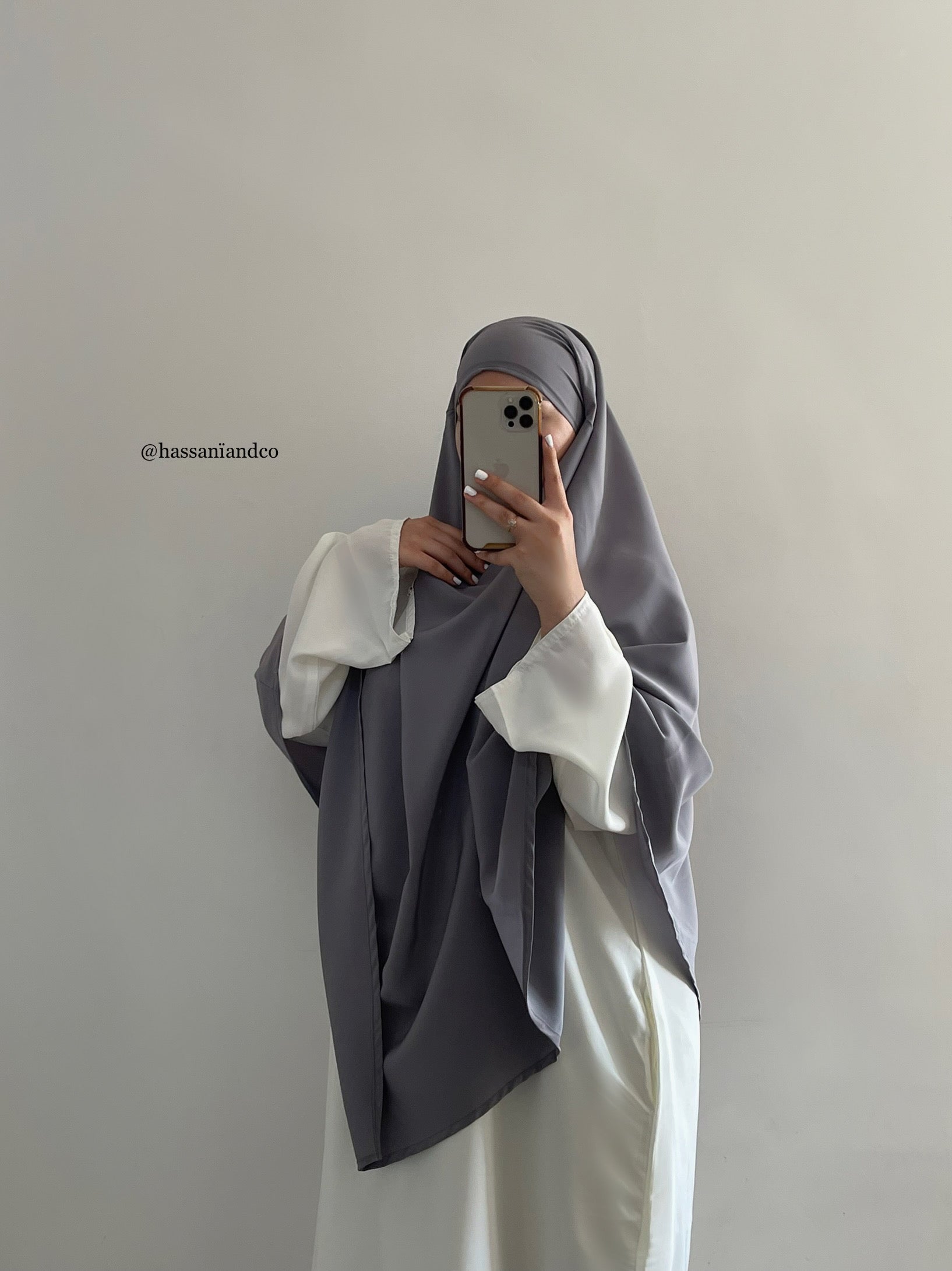 Our grey winter khimar with blue undertones