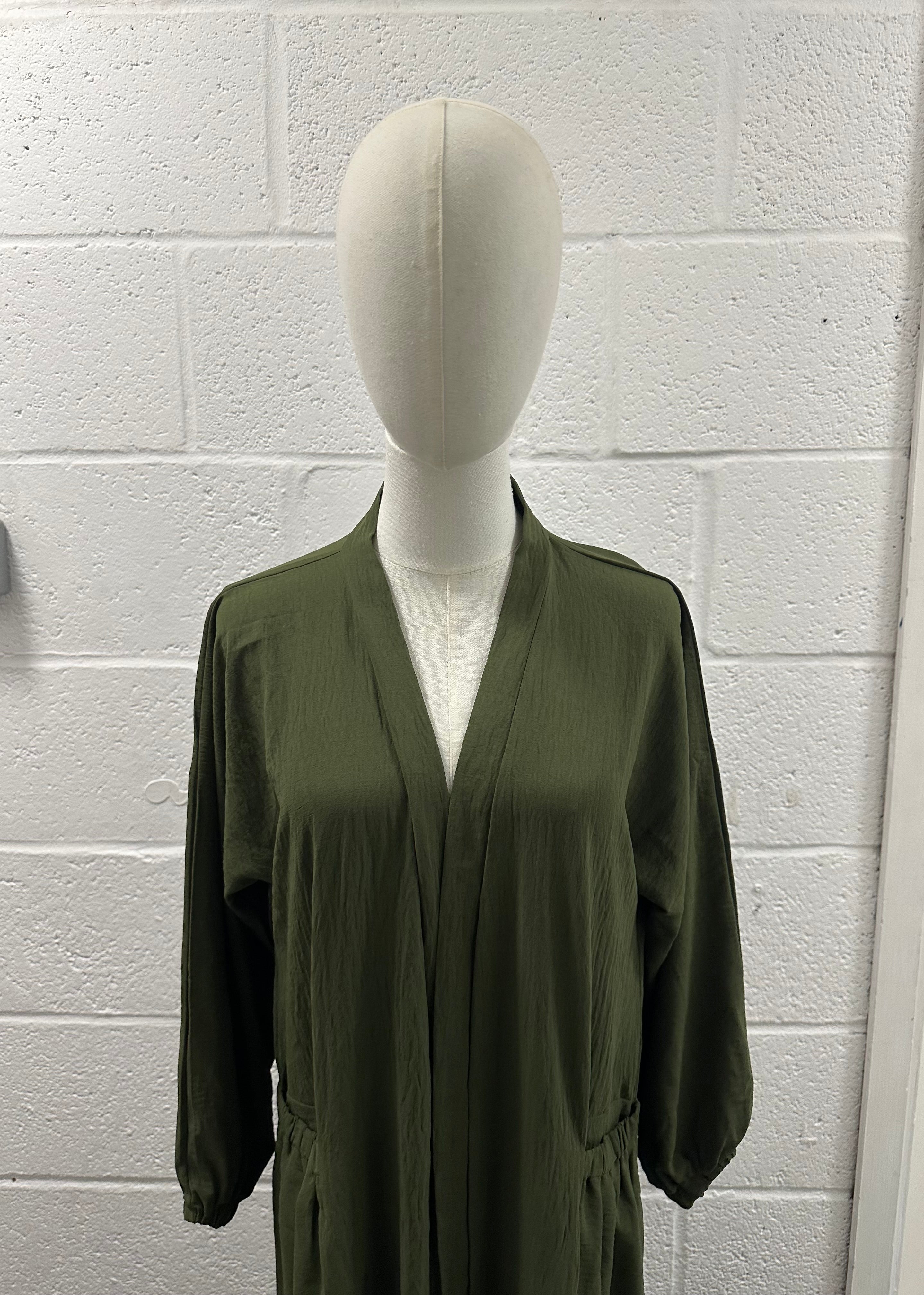 An open abaya, made with stretchy, soft crepe fabric for maximum comfort as well as side pockets for extra convenience! SIZE 52 - NO SCARF/BELT