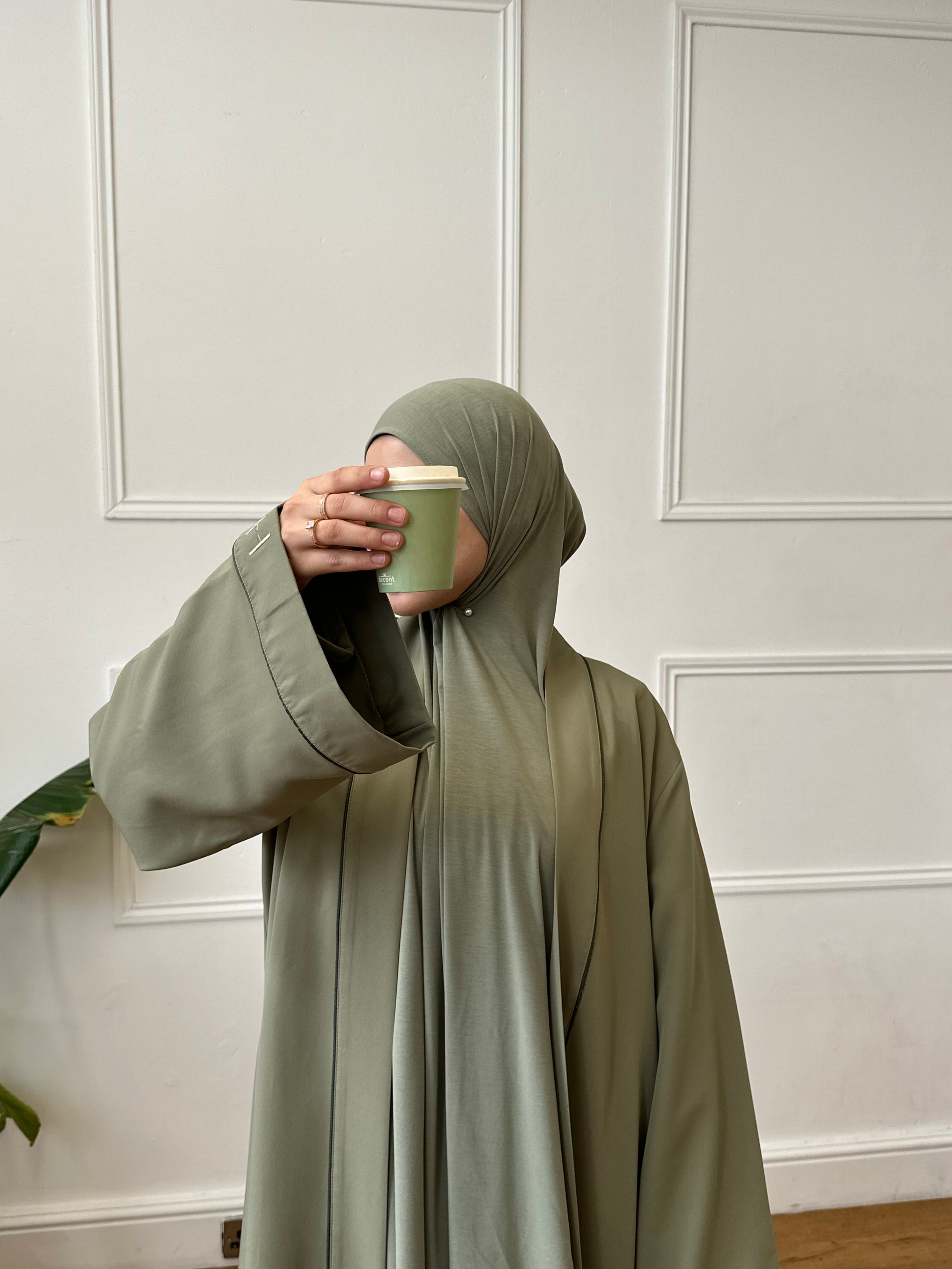 Matcha green structured abaya set