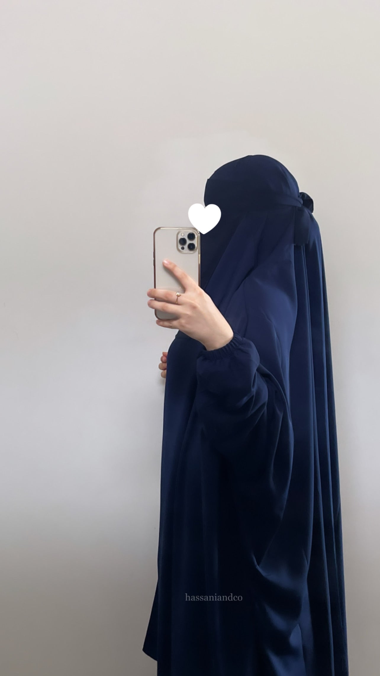 Please note this is a lighter shade of navy compared to our navy two piece French jilbab
