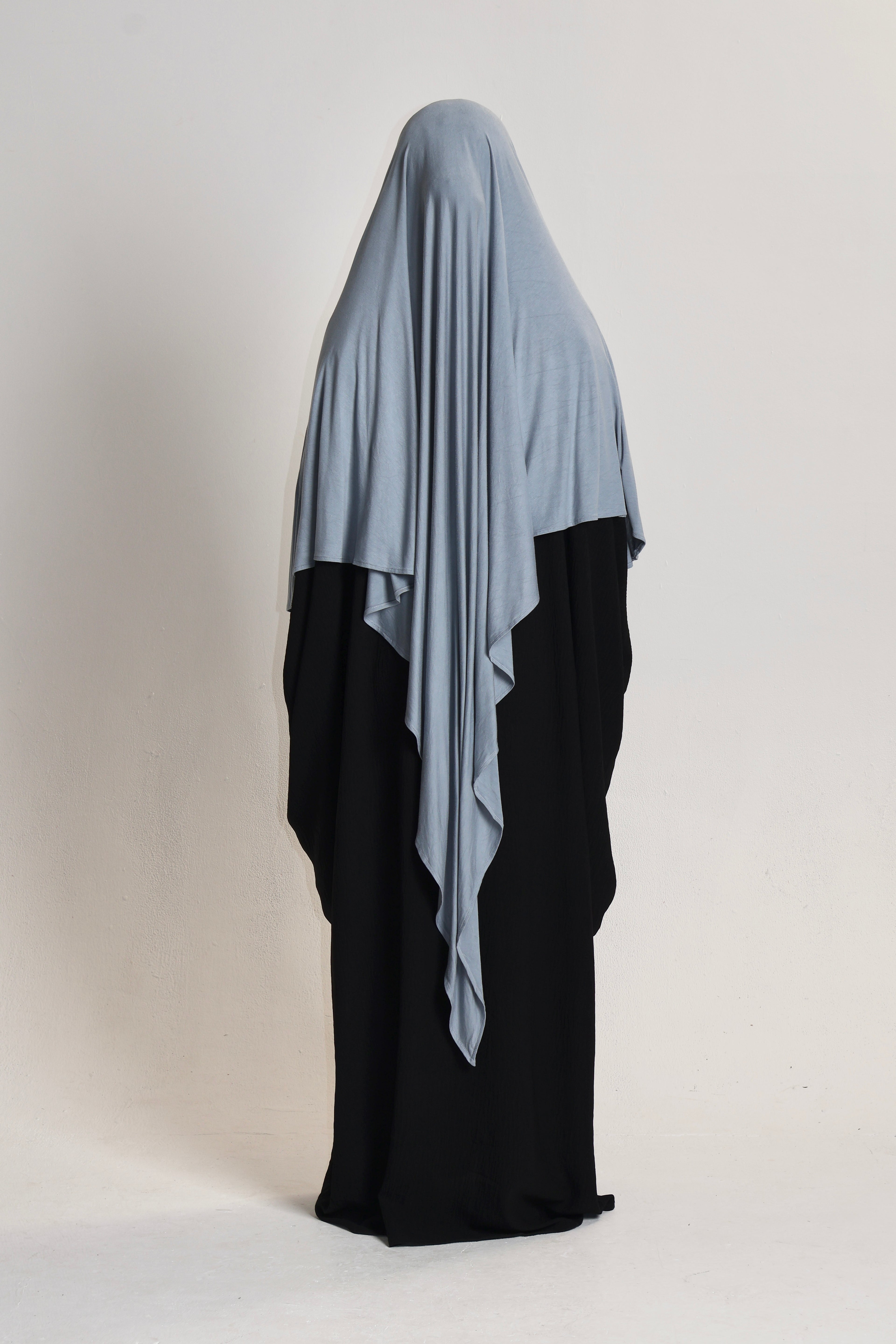 Hassani bamboo jersey khimar in pastel blue with light grey undertones