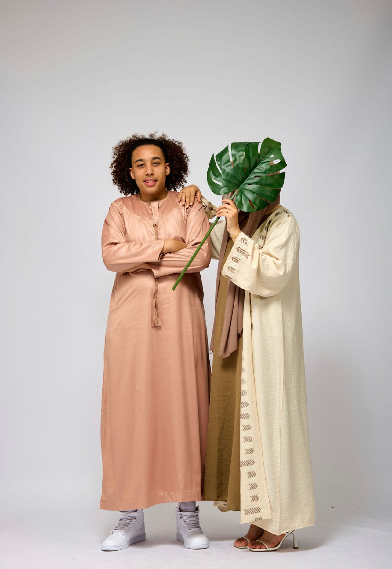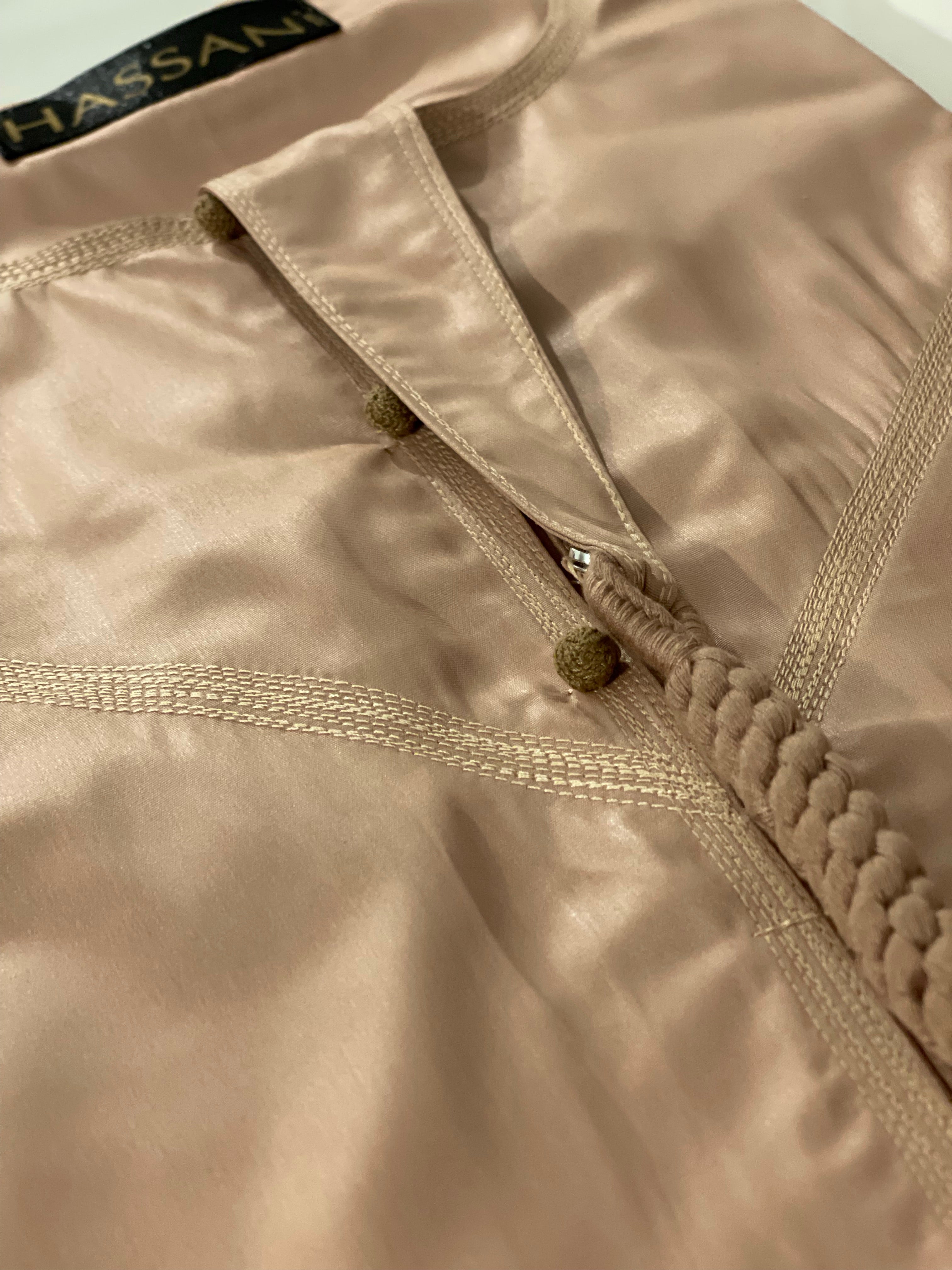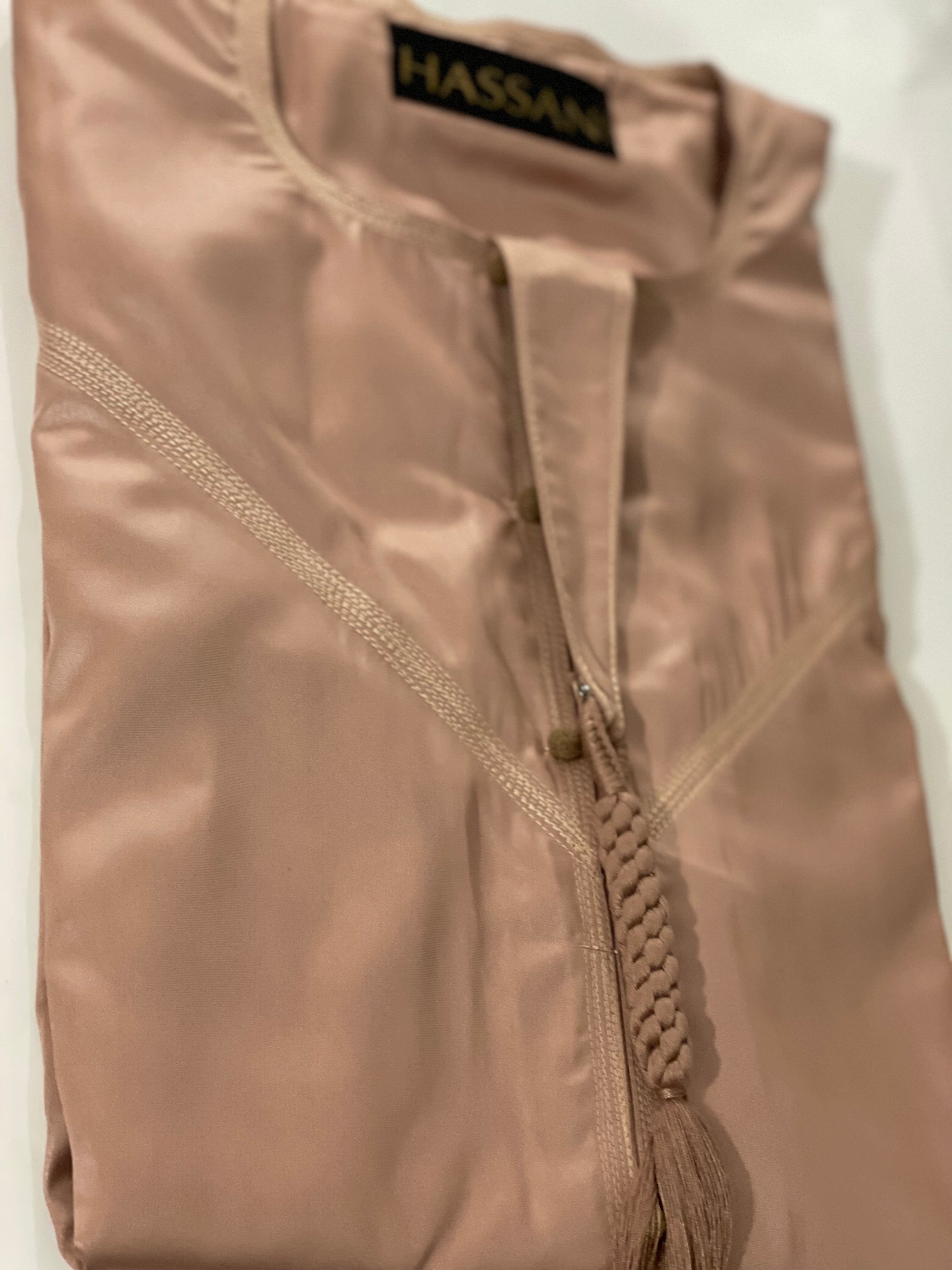 Our warm, sand toned Emirati style thobe. Includes a removable tarboosh (tassel) and pockets on both sides. Perfect for everyday wear. Available in multiple sizes