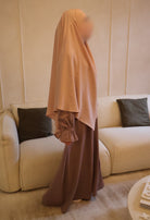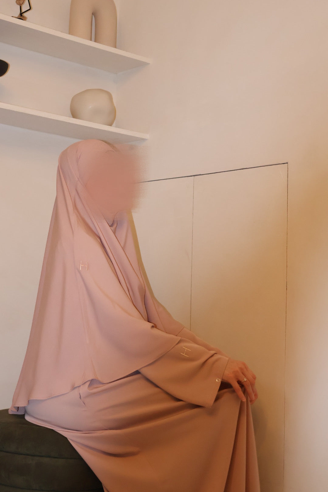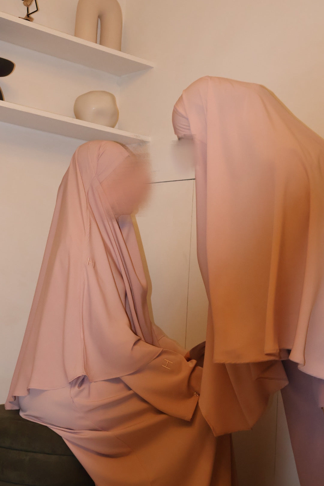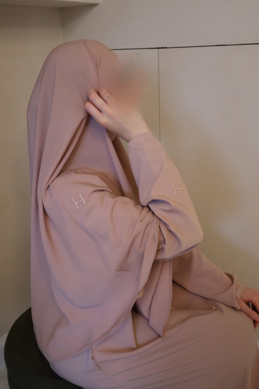 Essential diamond cut style khimar in BABY PINK. Stitched with a doubled up head tie band for durability and security when tied, as opposed to a standard khimar which has only one layer of fabric on the head tie region.