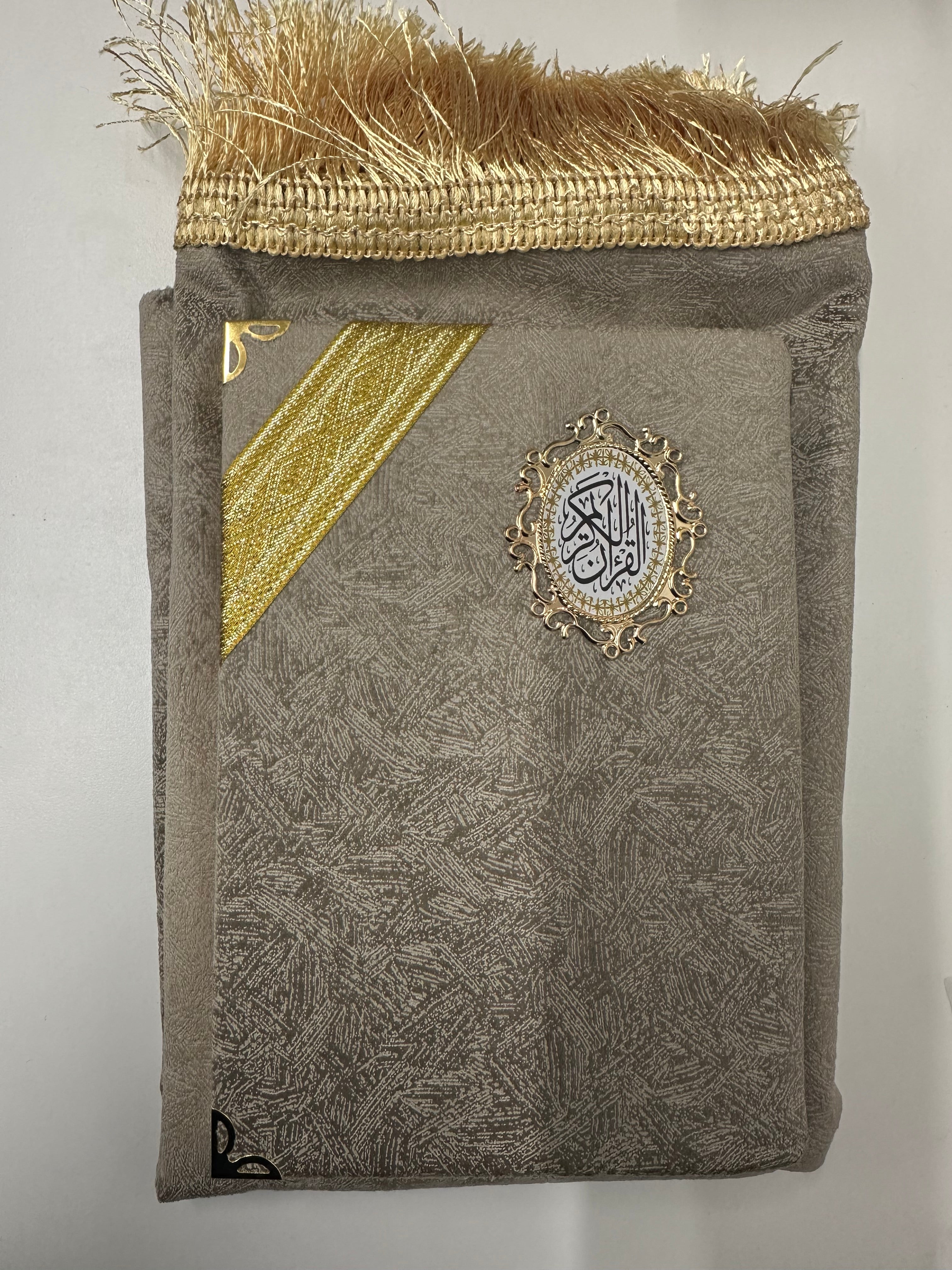 TAUPE PATTERNED QURAN AND PRAYER MAT SET