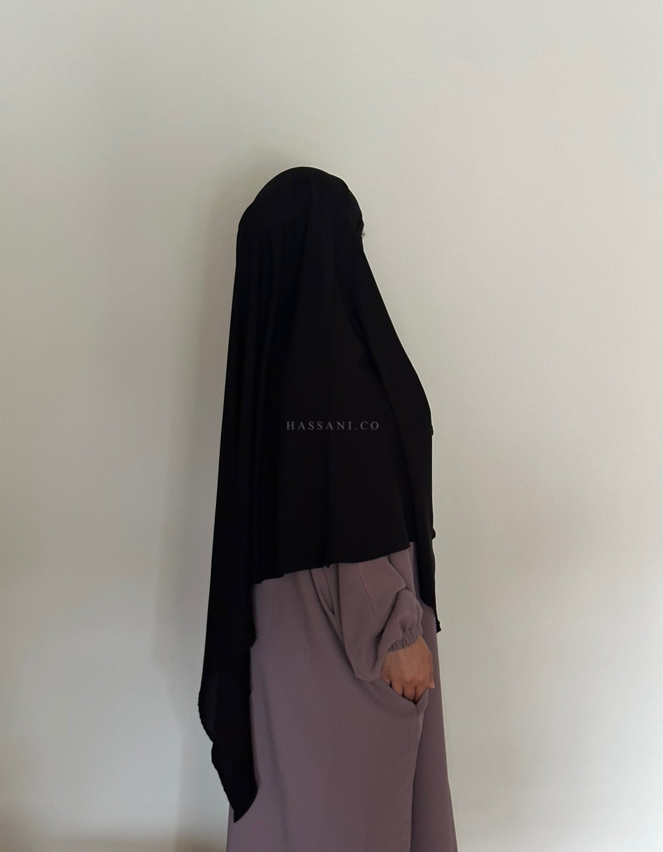 Please note: colour may vary slightly under different lighting. The abaya has been paired with our black diamond khimar, available to purchase separately.